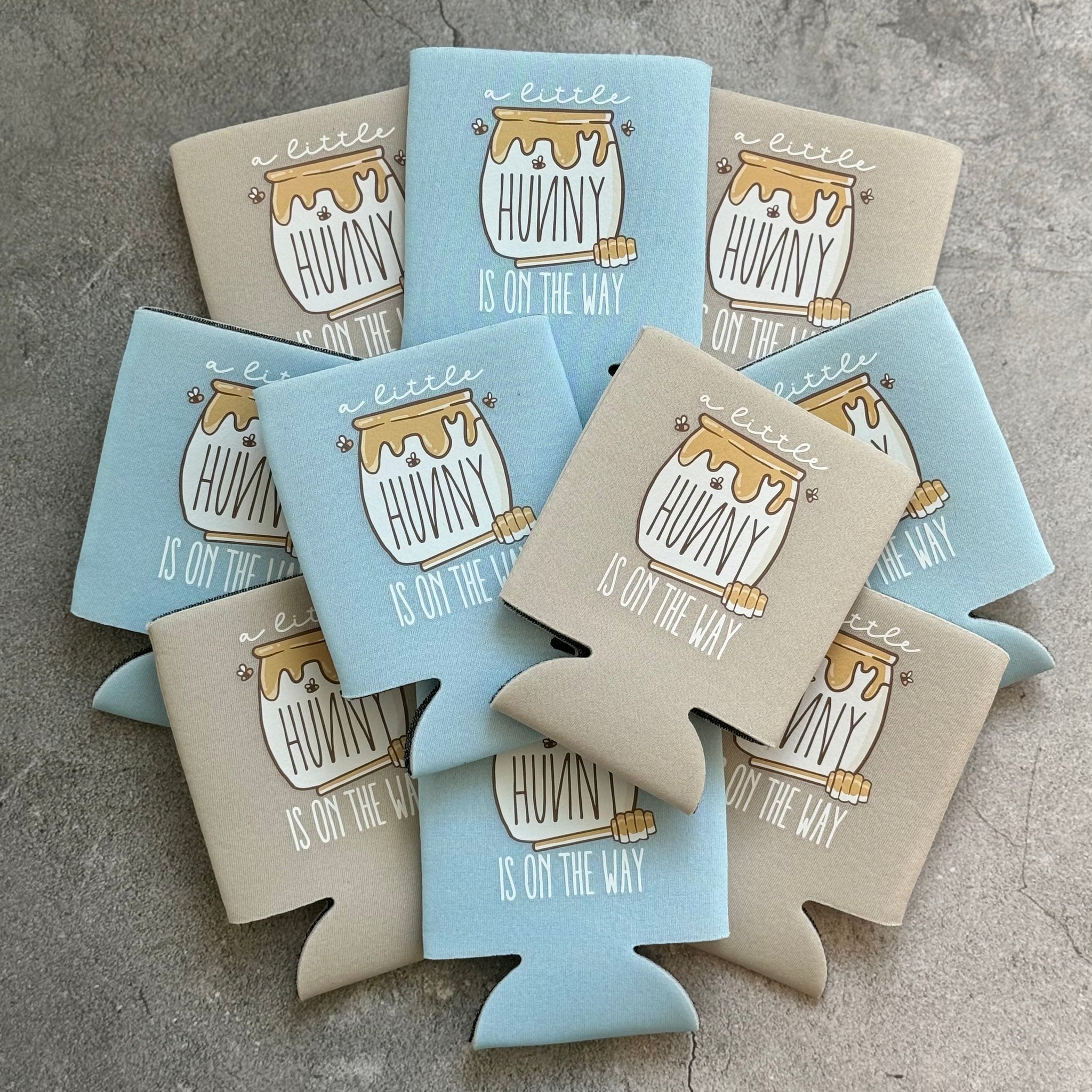 Buzz, buzz—big news is on the way! These "A Little Hunny is on the Way" can coolers are the perfect baby shower favor to keep drinks cold while the excitement hive is buzzing. Designed to fit standard 12 oz. cans, they’re as sweet and refreshing as a jar of fresh honey!