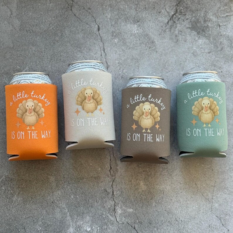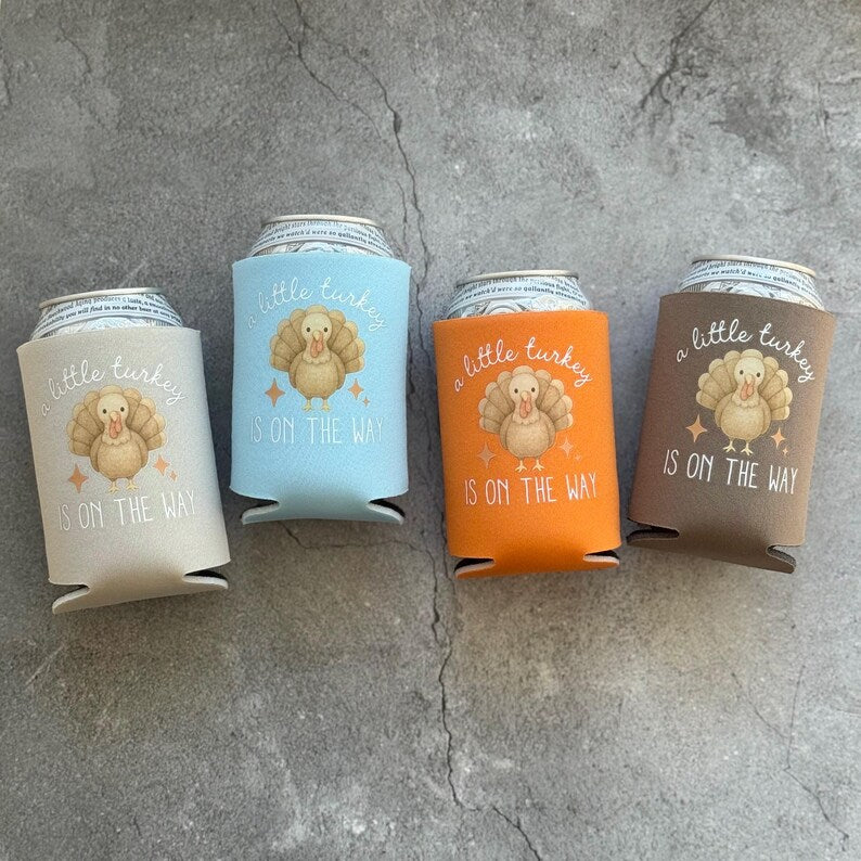 Gobble gobble! A little turkey is on the way! These fall-inspired can coolers will bring a special touch to your baby shower this fall!
